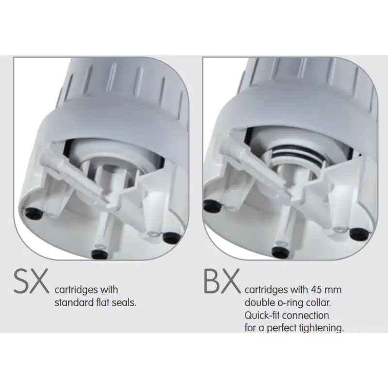 DEPURAL® TOP fit to 10” cartridges with both standard SX flat seals (DOE) and BX quick-fit double o-ring end-cap, all available from the wide range of Atlas Filtri cartridges SX and BX type.