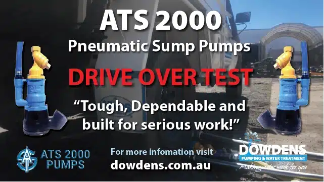 Dowdens Pumping & Water Treatment are the Australian authorised distributor for ATS 2000’s range of heavy-duty submersible lube free pneumatic vortex pumps.