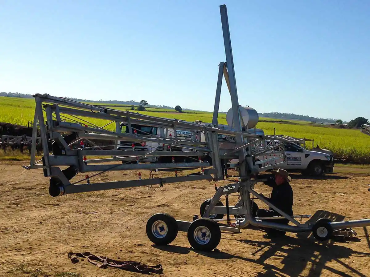 Dowdens Pumping & Water Treatment Mackay branch has delivered a Height Adjustable Hard Hose Boom Irrigator to a local Victoria Plains, QLD Sugarcane Farm. Farmer Ian Stevenson operates a number of sugarcane farms in and around Victoria Plains, QLD. Due to lack of rainfall during the 2015/16 growing season, and a desire to lower his overall irrigation costs Ian decided to purchase a MONSOON Hard Hose Irrigator, combined with a RAPTOR Folding Boom to better facilitate irrigation of his cane.