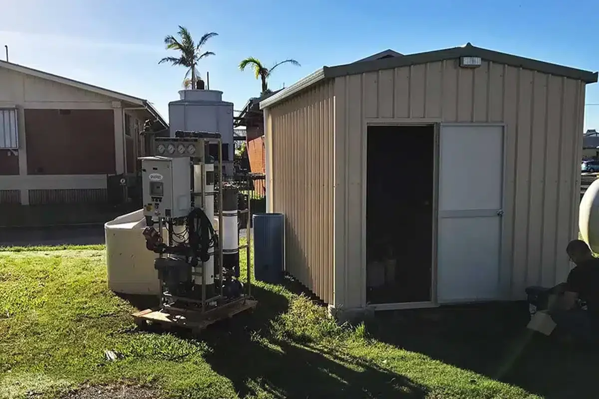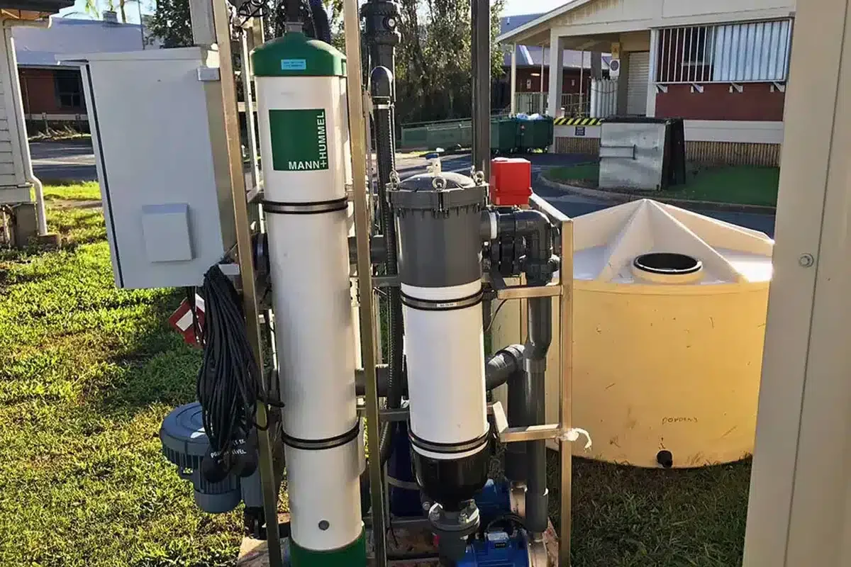 There were two water sources available at the time, the mains water supply or bore water from the Proserpine Hospital. Queensland Health instructed Dowdens to connect the UF Treatment system to the bore water supply to remain as self-sufficient as possible post-Cyclone Debbie.