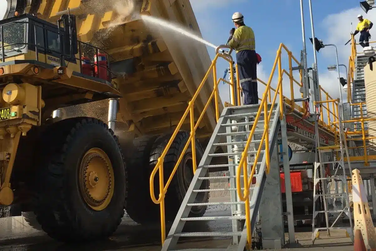 Downer’s project brief to Dowdens Brisbane was for the design/manufacture/installation and commissioning of a Heavy Vehicle Wash Bay capable of processing a minimum of 5 vehicles per day, with each vehicle taking approximately 1 hour to wash. Meandu Mine required this new Heavy Vehicle Wash Bay to be constructed after the mine had recently purchased a fleet of new generation trucks (KOMATSU 830E Trucks) which are considerably larger in size compared to their existing fleet.