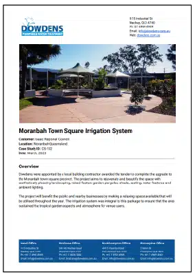 Dowdens were appointed by a local building contractor awarded the tender to complete the upgrade to the Moranbah town square precinct. The project aims to rejuvenate and beautify the space with aesthetically pleasing landscaping, raised feature garden, pergolas, shade, seating, water features and ambient lighting.