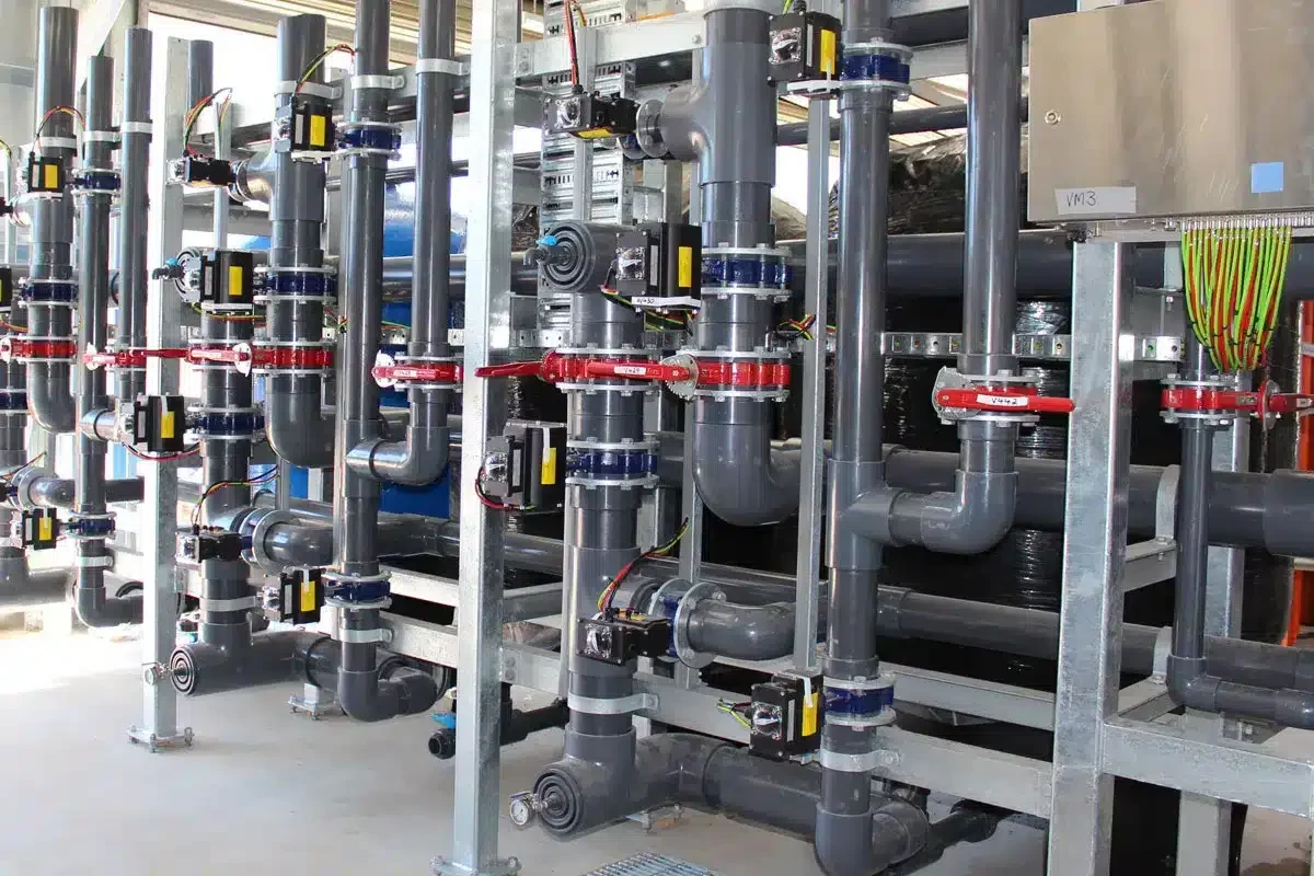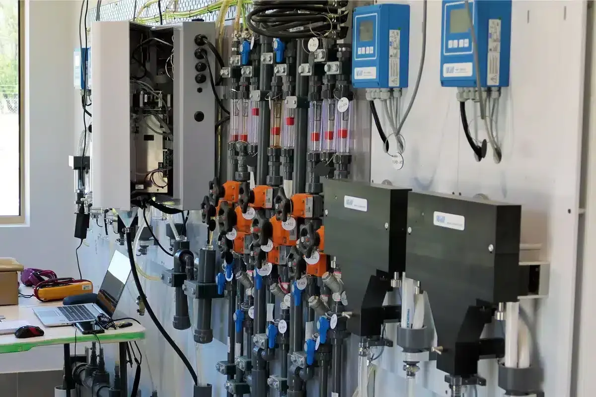 chemical dosing systems (NaOH and chlorine gas) and associated tanks, pumps and water quality monitoring instrumentation.