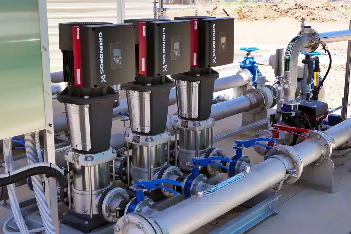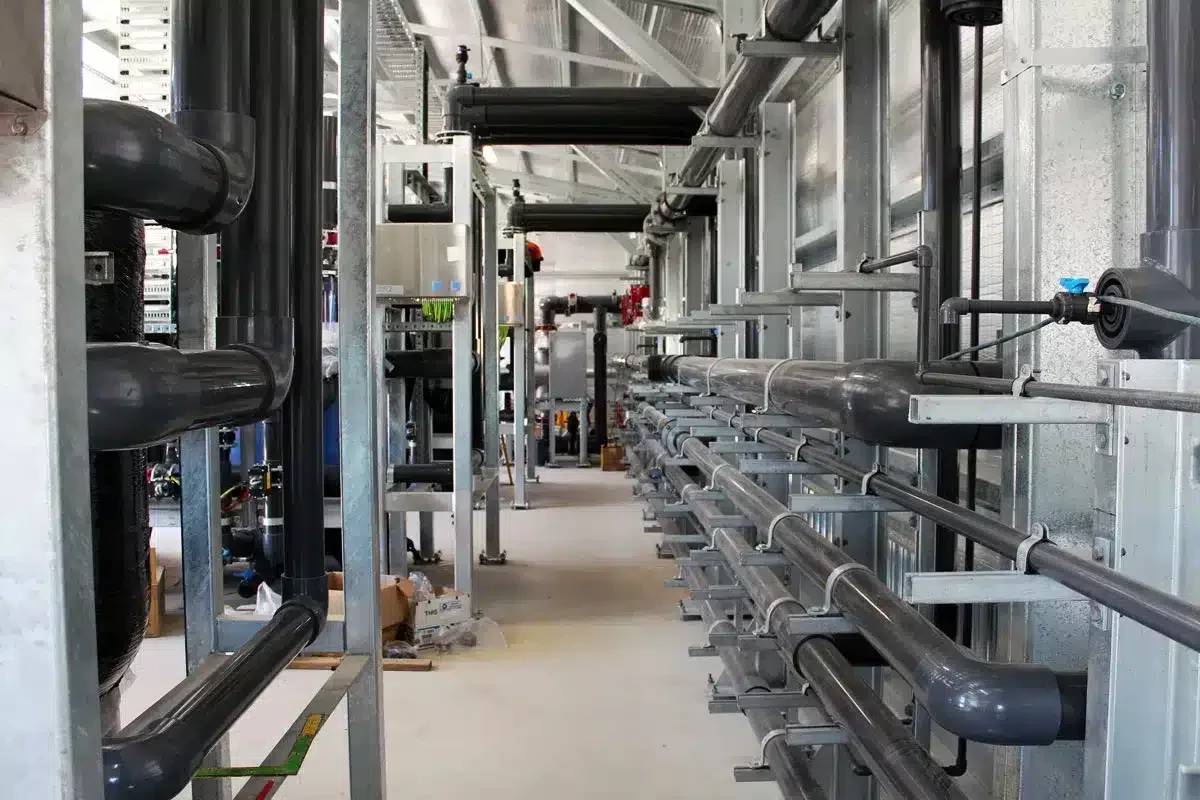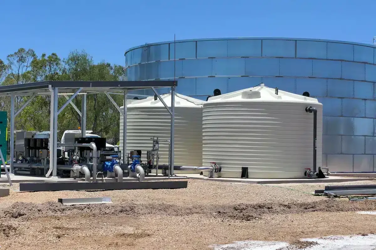 Raw water is produced by the existing borefield, made of 6 separate bores, and transferred to the site via an isolated borefield network. The raw water is then stored on-site in the raw