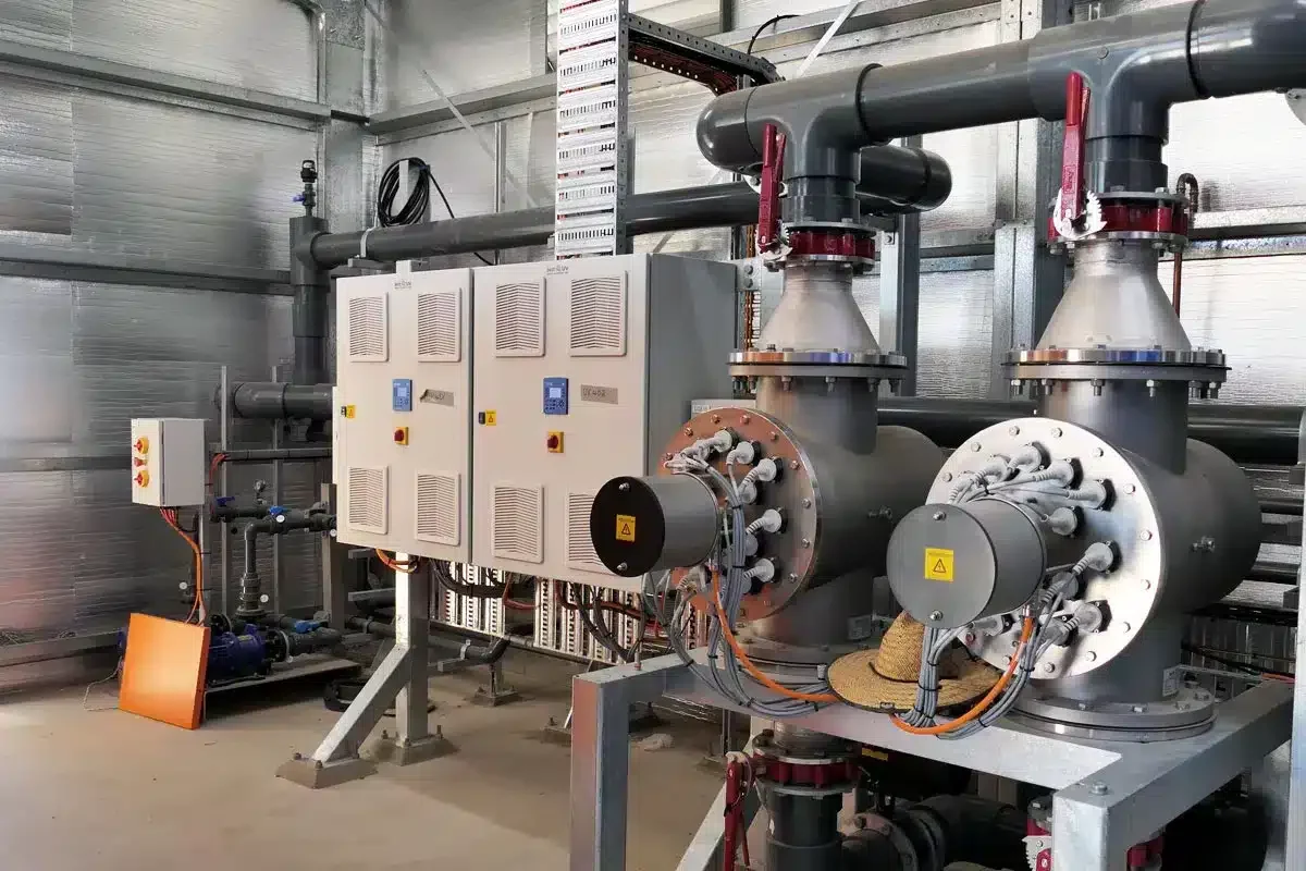 The now sterilised water produced by the main water treatment process is disinfected with super-chlorinated water produced by a proportionally controlled chlorine gas dosing system. This is the final process step before the treated water enters the 2 ML treated water tank.