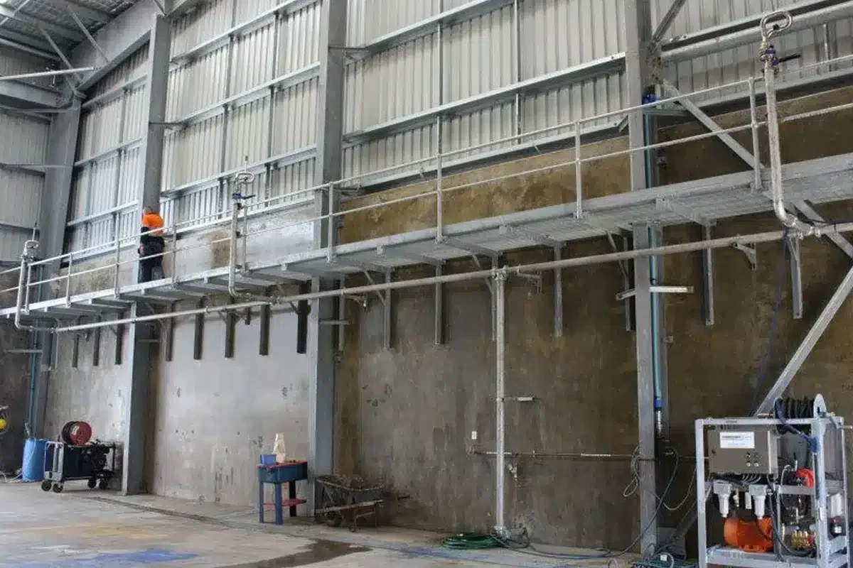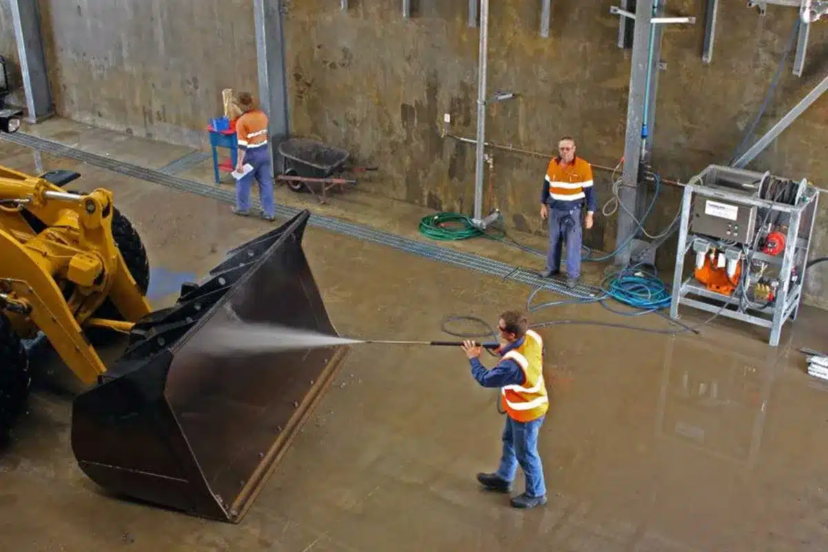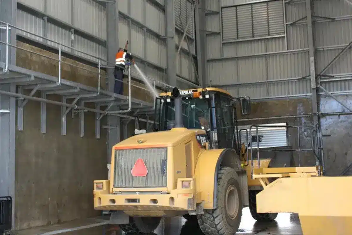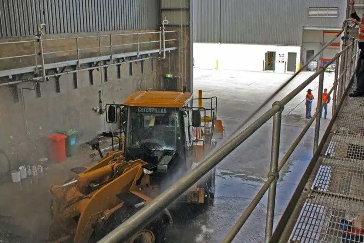Dowdens Pumping and Water Treatment suggested Orionstone utilise the two overhead gantries already present on-site. They were also advised they would require several large wash cannons plus a hot/cold pressure washer to efficiently clean the large mining machinery Orionstone had coming through the site. A variable speed pressure system was also recommended.