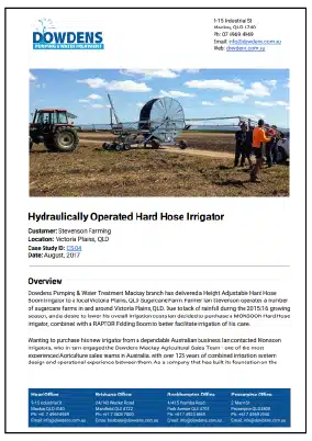 Dowdens Pumping & Water Treatment Mackay branch has delivered yet another High Profile Soft Hose Boom Irrigator to a local Ilbilbie Sugarcane Farmer. Longtime Dowdens customer Brian Stevens operates a number of sugarcane farms in and around Ilbilbie, QLD.