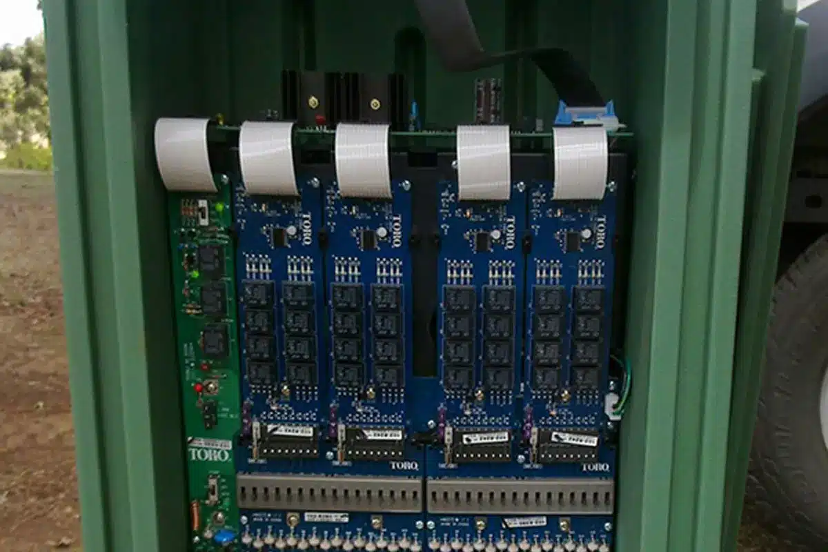 Dowdens’ Irrigation Design Specialists identified problems with one of the existing submersible pumps – it was removed, serviced by Dowdens Pumping and Water Treatment’s infield technicians and then reinstalled. The Variable Frequency Drive (VFD) was reset to the correct flow usage for the course, and the existing central controller was reprogrammed. Two new TORO Satellite Field Controllers were installed with trenched power supply and cabling – these were connected to the existing central control system.