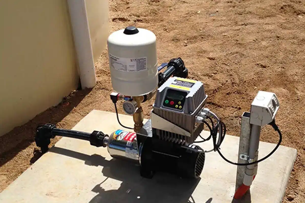 The customer required water pumped to 2x 10,000L holding tanks over 100 m away, and then pumped to a residential dwelling a further 85 m away, where the water is passed through a filter and used for domestic purposes around the house.