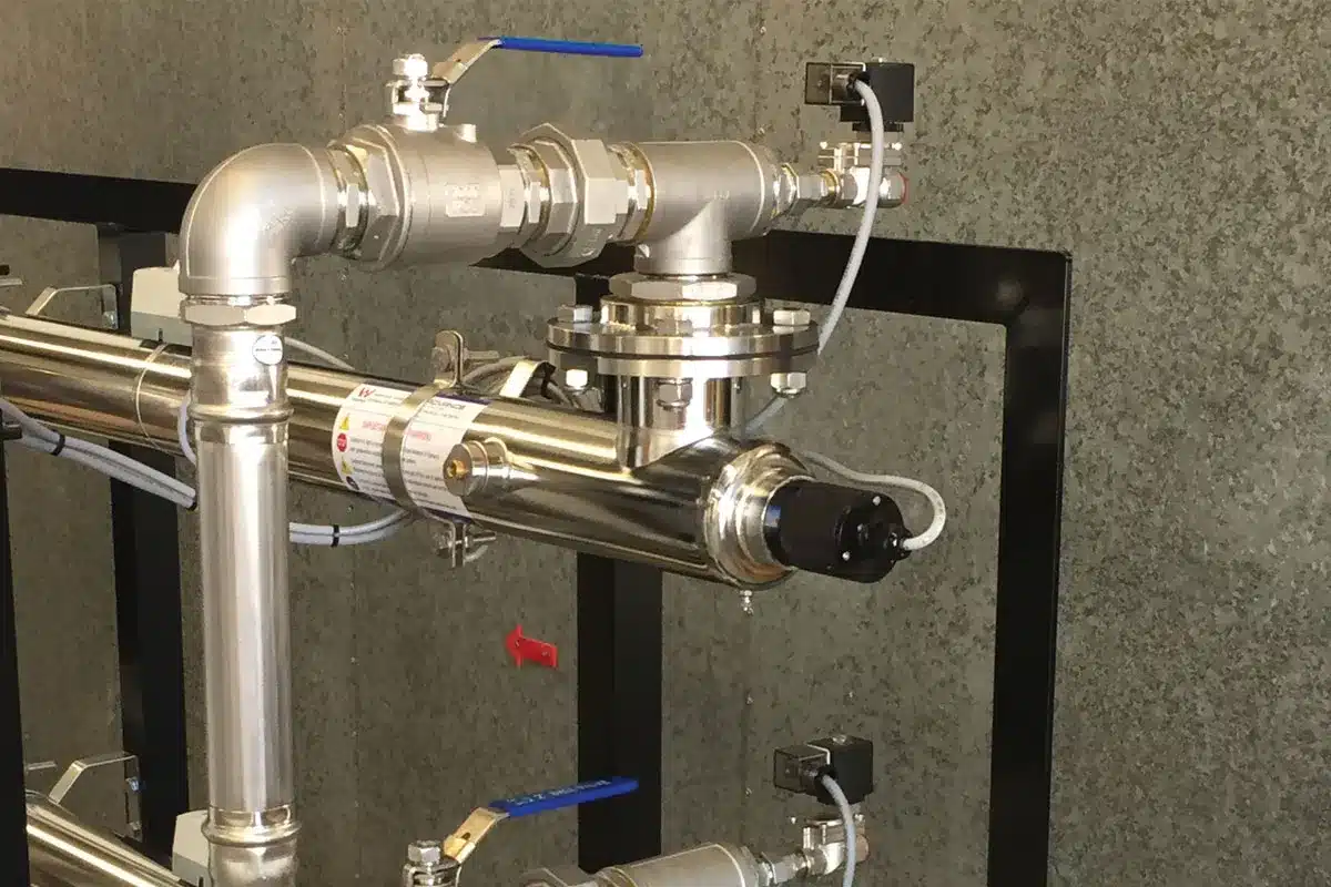 Dowdens provided a Grundfos Multistage triple booster pump set to look after the delivery of the water at 4lps. Our water treatment engineering team designed a custom made dual 1micron stainless steel bag filter system to suit the customer’s specifications, which included dual Ultraviolet lamp disinfection. The system is connected via high quality 316 stainless steel press-fit pipe and fittings.