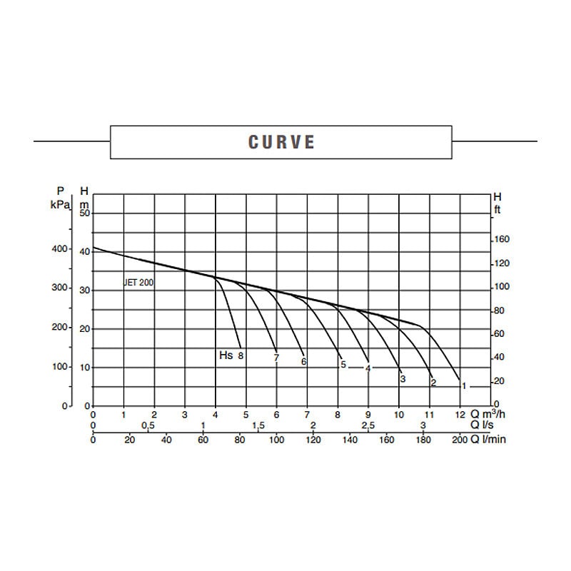 The pump is a self-priming surface mounted jet pump and has a suction capability of up to 8m.