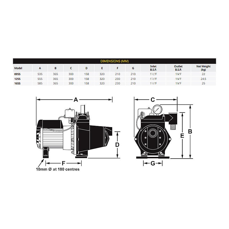 | Maximum capacity (@140kPa, 6m suction) lpm | 85 | 96 | 122 |