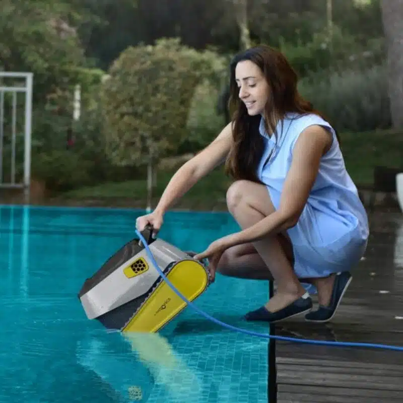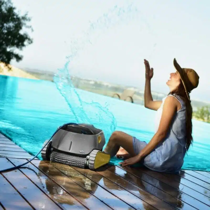 Experience superior pool cleaning with this advanced robotic pool cleaner. It features dual active scrubbing, CleverClean scanning navigation, and a PowerStream mobility system for effective pool cleaning on all surfaces, leaving the floor, walls, and waterline spotlessly clean.