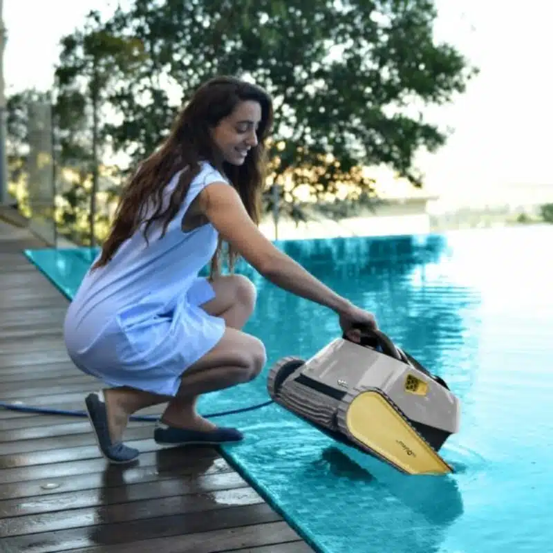 Maytronics Dolphin X30 robotic pool cleaner cleans the floor, walls, and waterline of pools up to 15m. Choose between two filtration options to capture rough debris or ultra-fine dirt and debris.