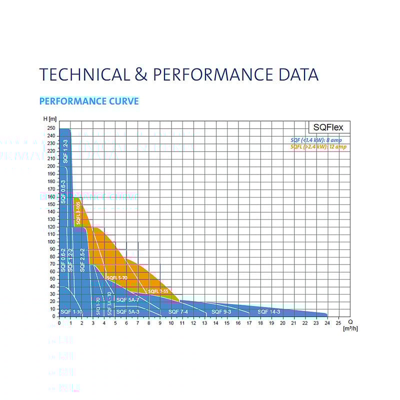 The 3″ SQFlex centrifugal pump is for medium heads and flow rates.