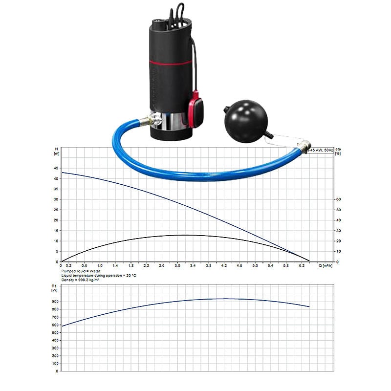 The SB 3-45 AW is equipped with a 15 m supply cable, and the maximum installation depth is 10 m below the water level, with a liquid temperature ranging from 0 °C to 40 °C.