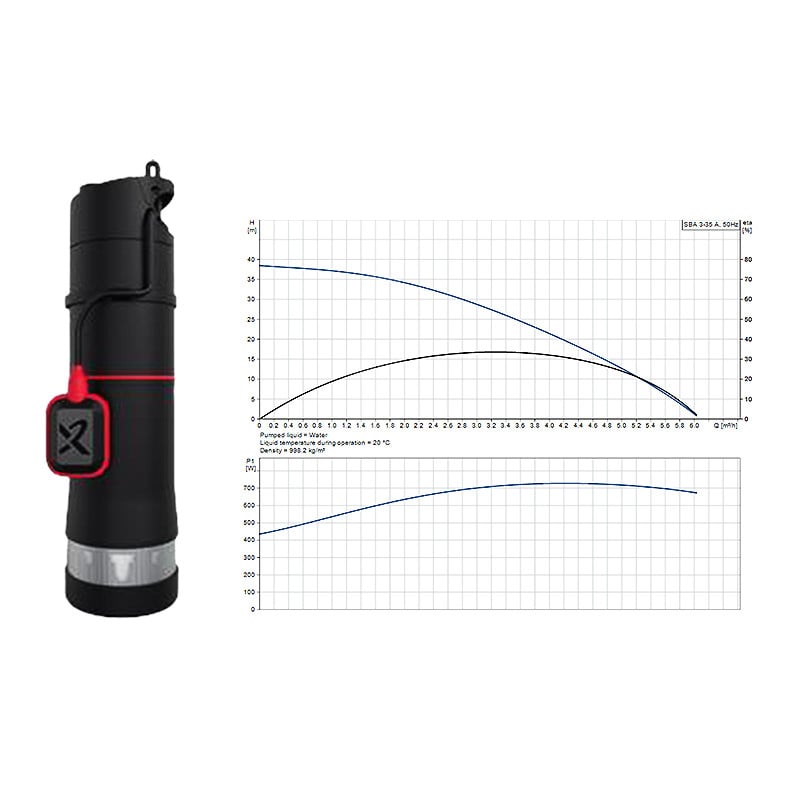 Grundfos SBA 3-35 A is an all-in-one submersible booster designed for pumping clean water for domestic use. The SBA is built on the proven SB platform and comes with an integrated control unit. This eliminates the need for an external pump controller in the house. It is silent when submerged and therefore a noiseless alternative to surface-mounted pumps. The pump is built from high-quality composite and stainless steel materials that are resistant to corrosion.