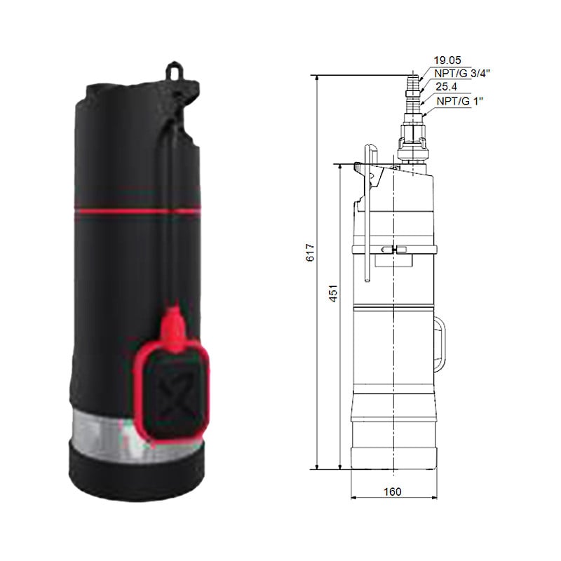 The single-phase model is effectively protected against any accidental overload by built-in thermal protection.