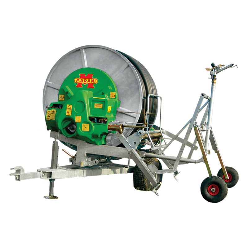Marani assemble and offers to their customers the fourth generation turbine system, providing excellent results even at very low pressures: 2-3 bar when using the spray boom and 5-6 bar when using the rain gun.