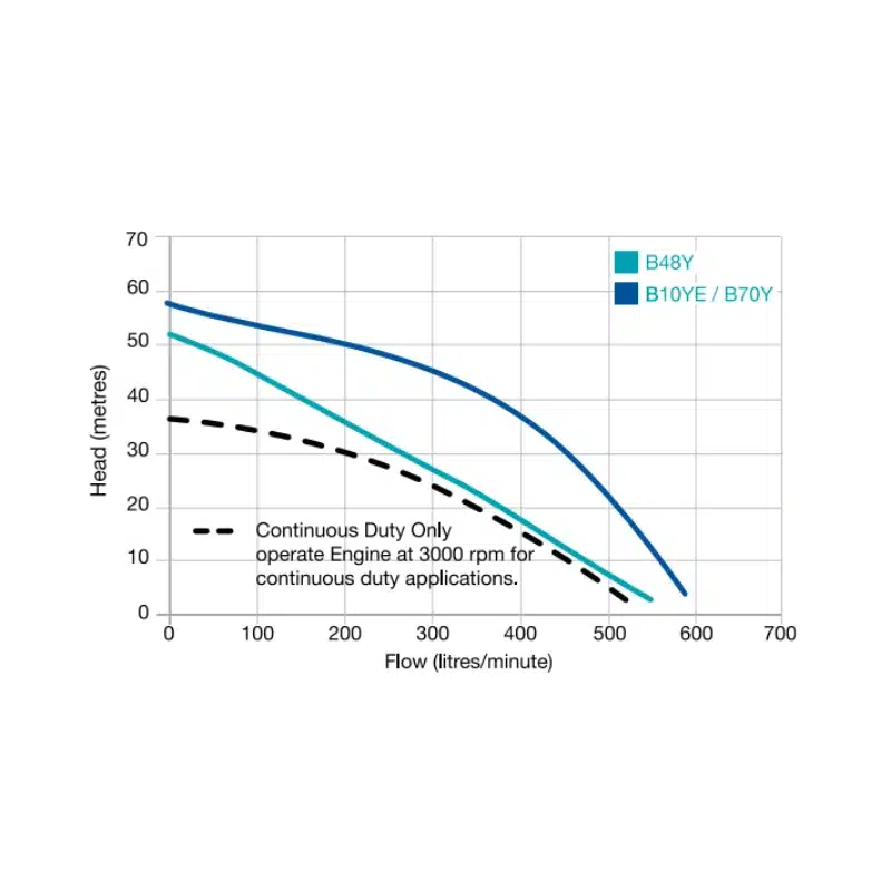 Horizontal, single-stage or twin-stage, surface mounted centrifugal pump with closed impeller/s for pumping debris free water coupled to a Yanmar 4.7HP (L48N), 6.7HP (L70N) or 10HP (L100N) engine.