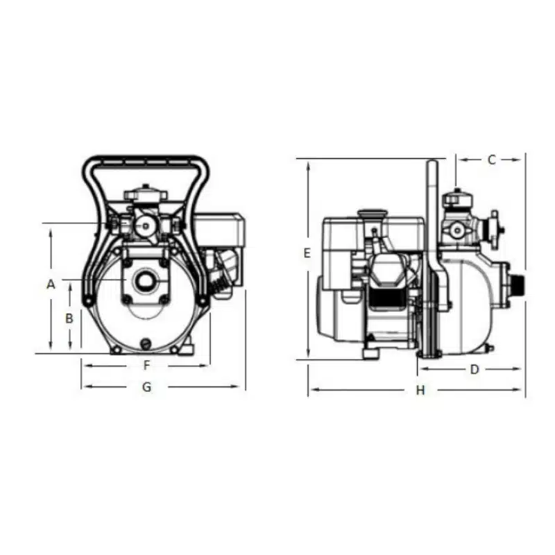 Horizontal, single-stage or twin-stage, surface mounted centrifugal pump with closed impeller/s for pumping debris free water coupled to a Briggs & Stratton Intek I/C 5HP, 6HP, 8HP or 10HP engine.