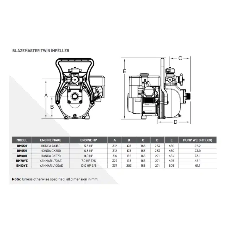 Onga BM55H Blazemaster Honda GX160 5.5HP Petrol Twin Stage Firefighting Pump